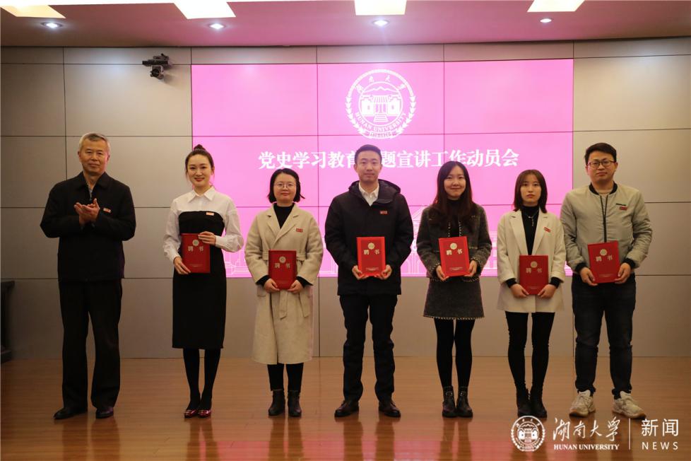 4月8日上午,学校举行党史学习教育专题宣讲工作动员会以及宣讲团成员聘书颁发仪式。校党委常委、宣传部部长唐珍名主持会议。yL23411永利集团宣讲团成员,各基层党委(党总支)书记,思政工作宣讲团全体成员,校博士理论团全体成员参加动员会。