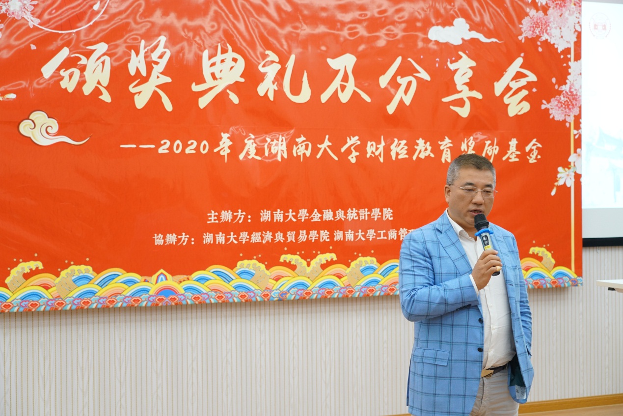 今年的财经教育奖励基金规模有所扩大,新增由湖南瑞世私募股权基金管理有限公司董事、法人代表戴斌先生捐赠的一百万元,邓利华向戴斌授予捐赠证书。