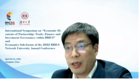 Junjun Hou, the dean of School of Economics and Trade, Hunan University, attended the opening ceremony and delivered a speech. He introduced the international development strategy of the college, as well as its relationship with BRICS universities, and put forward suggestions and thoughts on promoting practical and efficient cooperation among BRICS Network Universities. The seminar was divided into three sub-forums on the evening of April 20 and the afternoon of April 21.